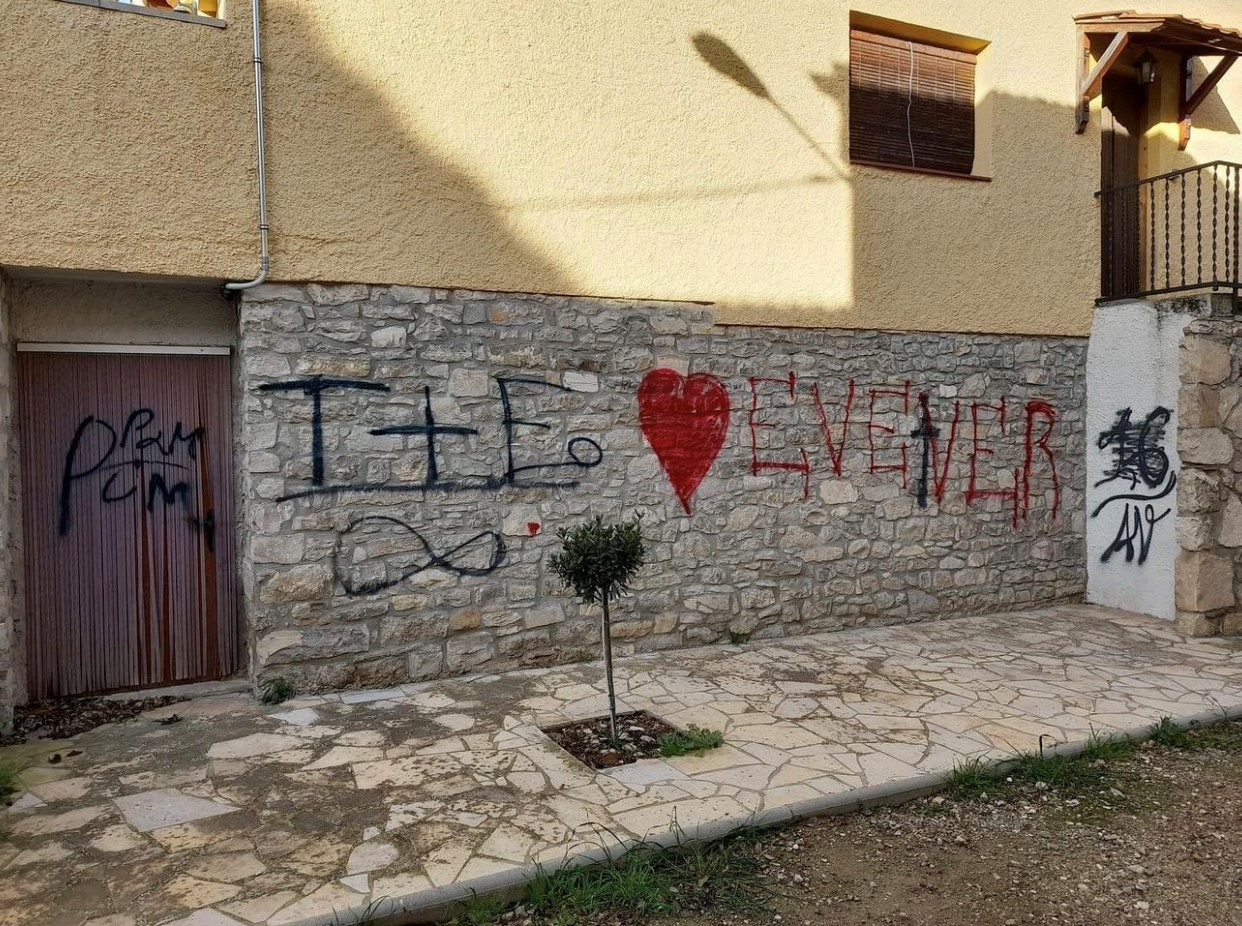 Diferents pintades fetes amb esprai per desconeguts. han aparegut en les parets dels edificis.