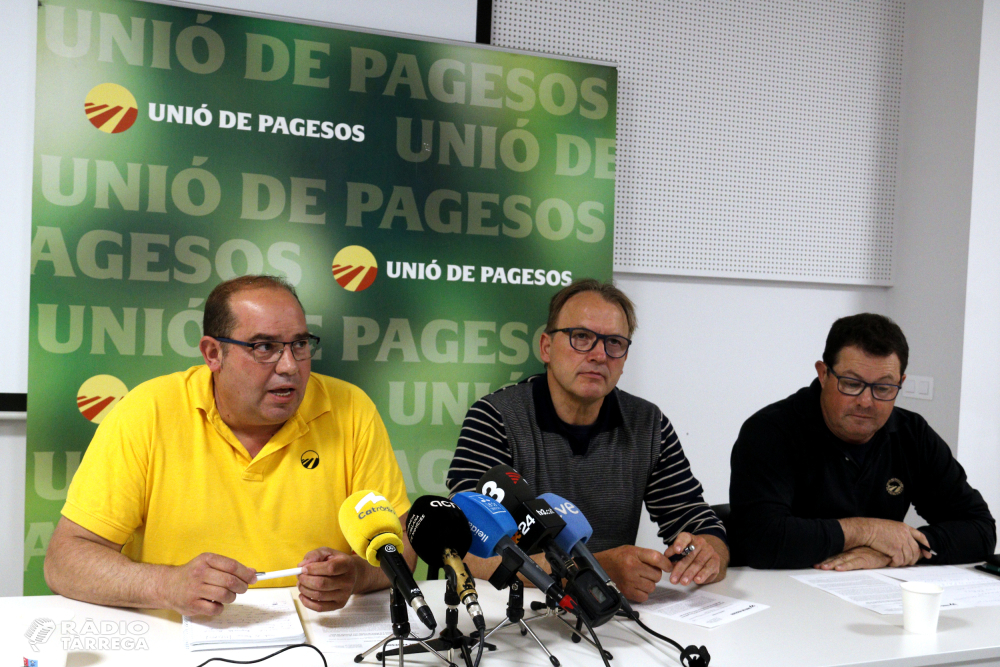 Unió de Pagesos ha advertit aquest dimarts que "hi haurà conseqüències al carrer", en forma de mobilitzacions, si el Govern no combat de forma efectiva la sobrepoblació de conills, senglars i cabirols a la plana de Lleida i al conjunt del país. En una roda de premsa des de la capital del Segrià, el sindicat ha denunciat que els danys als cultius per la sobrepoblació d'aquestes espècies "van a pitjor" i que l'administració no hi destina prou recursos. L'organització es queixa que d'ençà que el 30 d'abril va acabar l'emergència cinegètica per la sobrepoblació de conills a la plana de Lleida, l'executiu no ha aprovat ni ha desplegat encara l'anunciat Pla de Control de Població (PCP), i deixa les actuacions en mans dels vedats de caça.